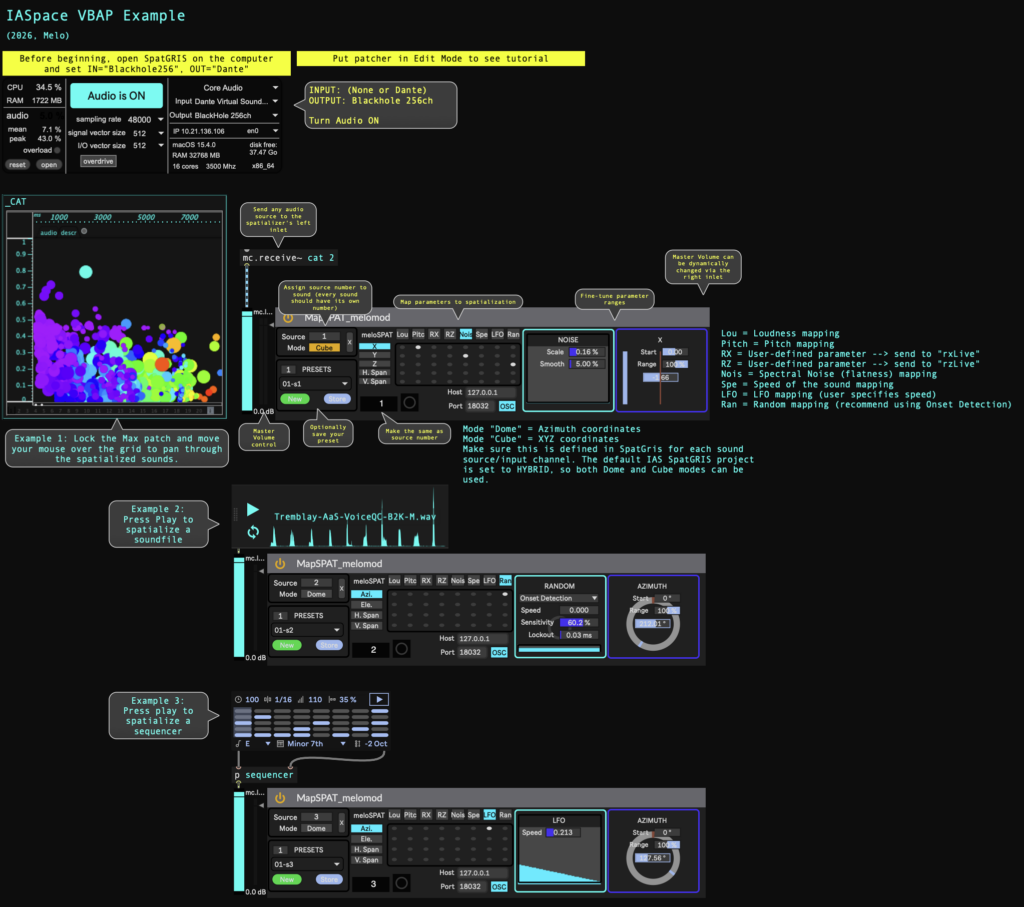 - Example 3: Press play on the sequencer to hear the sequencer spatialized gradually in a circle formation.